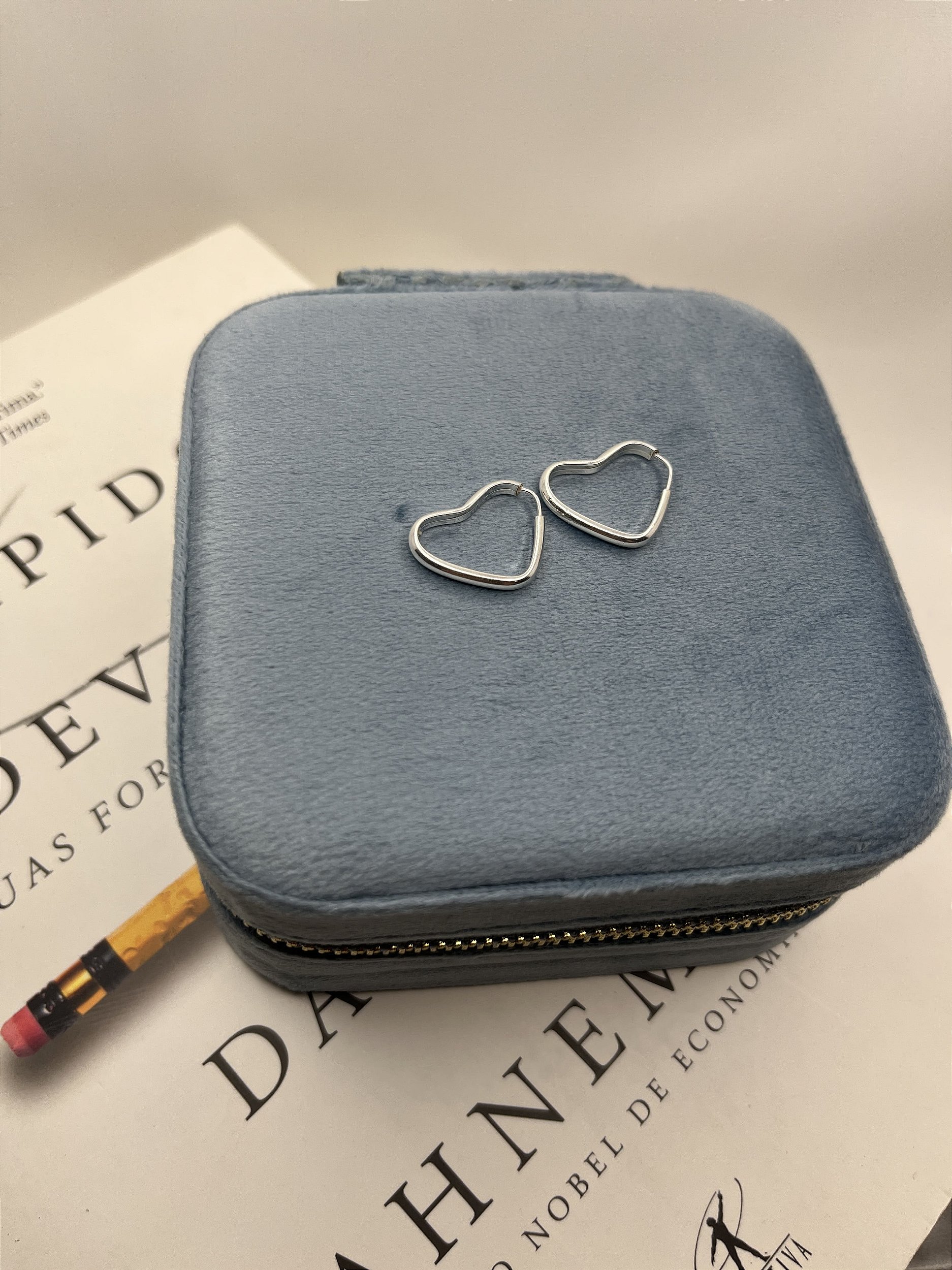 1 Par de Brincos Argola Prata 925 Coração 1,7cm Fio Anatômico 2MM
