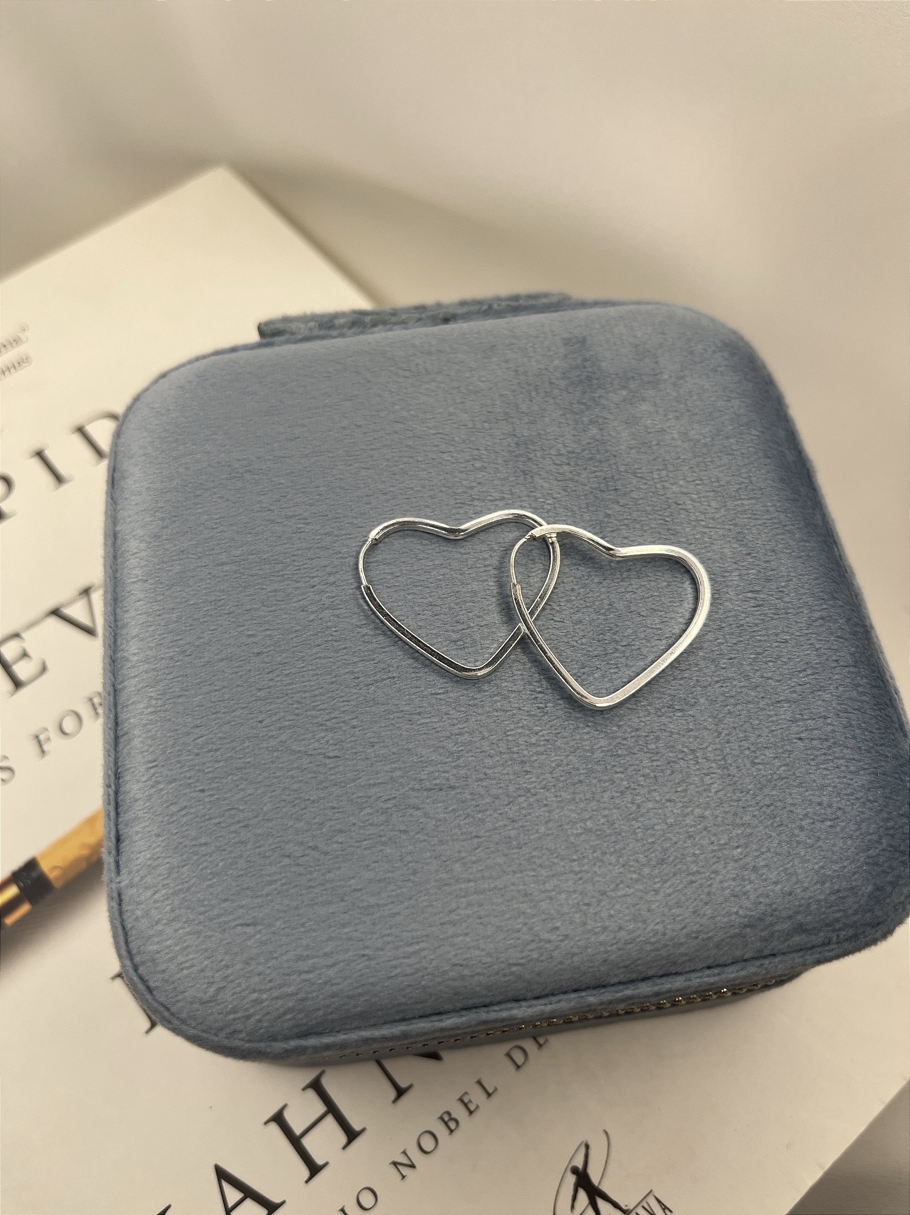 1 par de Brincos Argola Prata 925 Coração 2,6cm Fio Quadrado 1MM