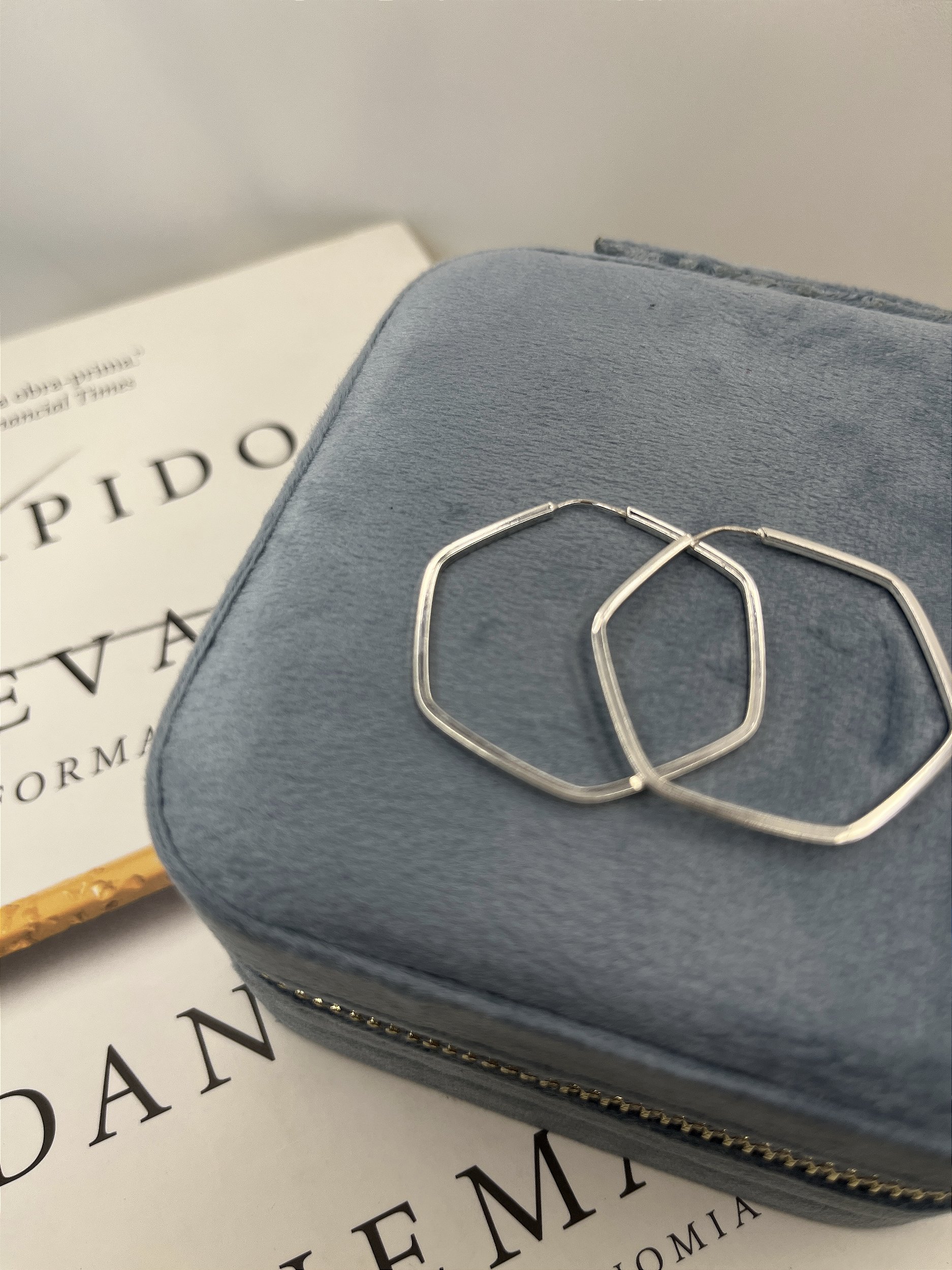 Brinco Argola Prata 925 Hexágonal 3,7cm Fio Quadrado 1MM