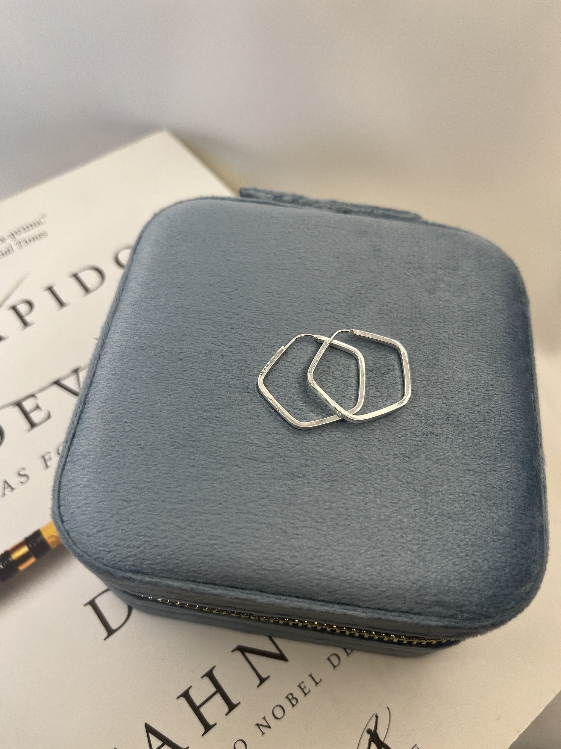 1 Par de Brincos Argola Prata 925 Pentágono 2,3cm Fio Quadrado 1MM