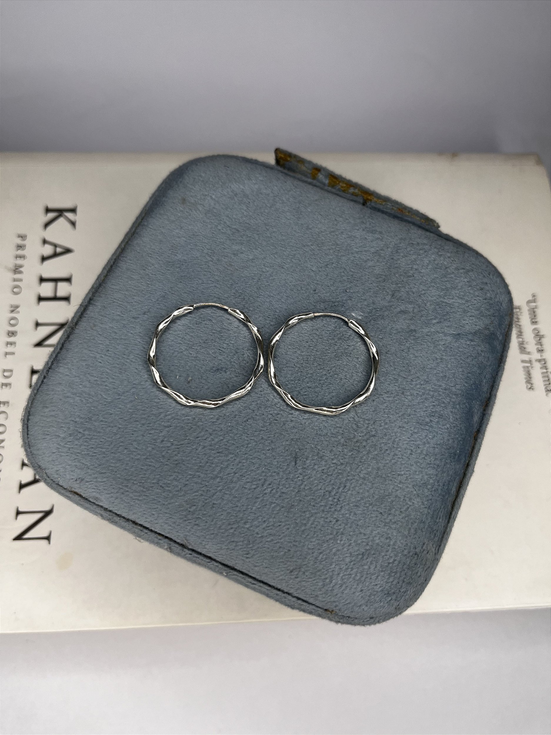 1 Par de Brincos Argola Prata 925 Redondo 3,2cm Fio Ondulado