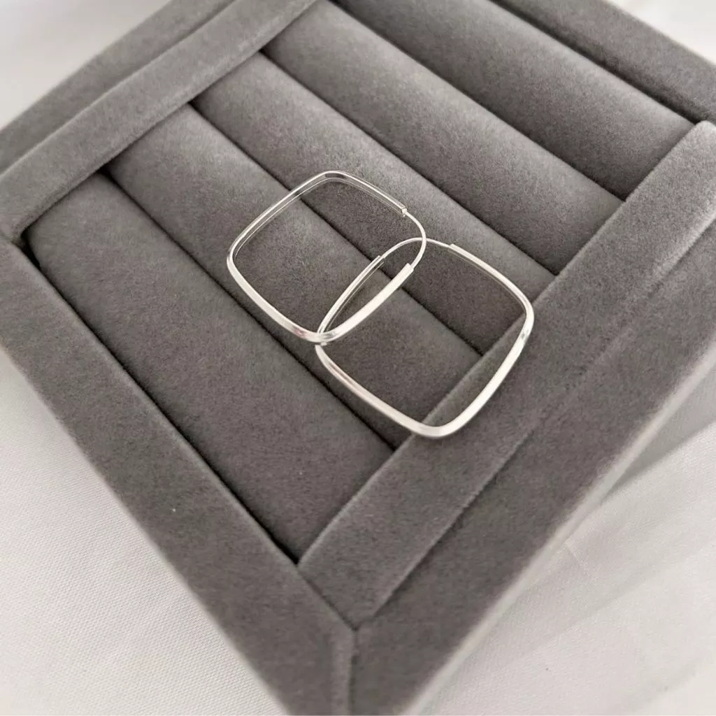 Brinco Argola Quadrada Prata 925 Fio Quadrado 25MM