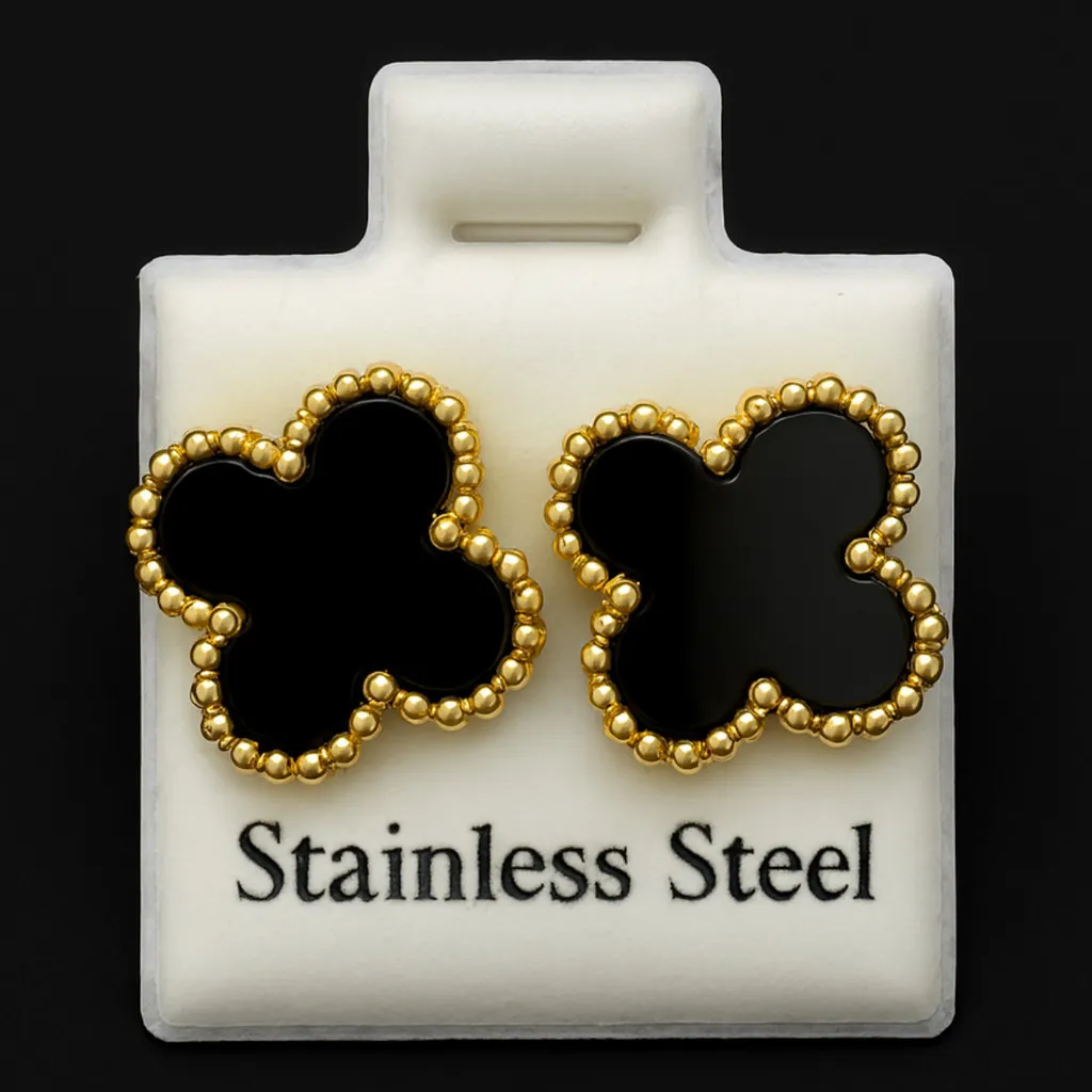 Brinco Pequeno Trevo Aço Inoxidável Preto Banhado
