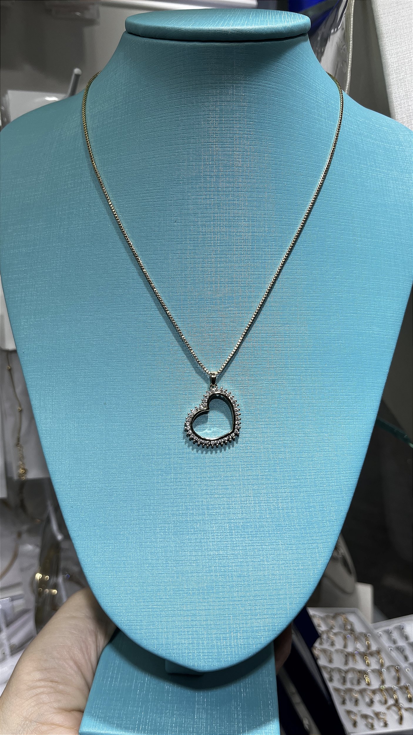 Colar Coração Vazado Cravejado com Micro Zircônias Aço Inoxidável 316L Banhado a Ouro