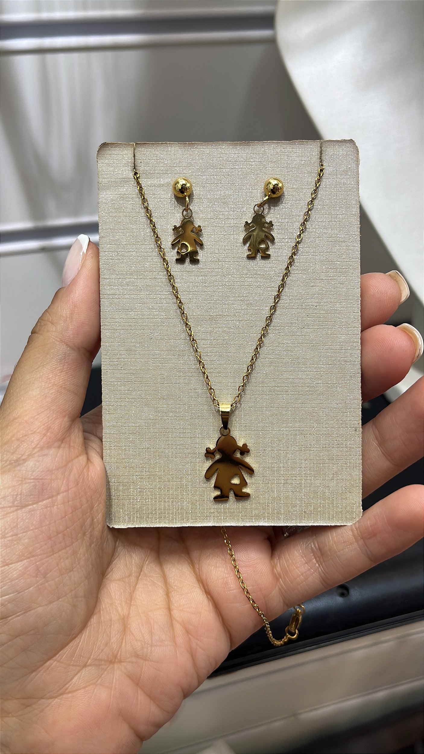 Conjunto Colar e Brinco Menina Aço Inoxidável 316L Banhado